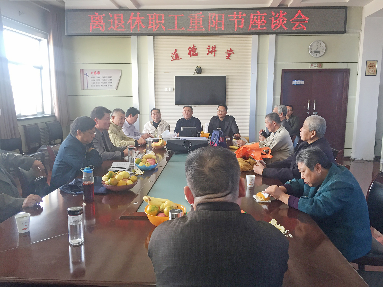 10月26日,在重阳佳节即将到来之际,365体育备用网站机关离退休职工 “重阳节”座谈会在韩庄运河水利管理局召开。南四湖局党委书记、局长李炳文,局副调研员赵建海同20多位离退休老同志欢聚一堂,共度佳节,向他们送去节日的祝福。