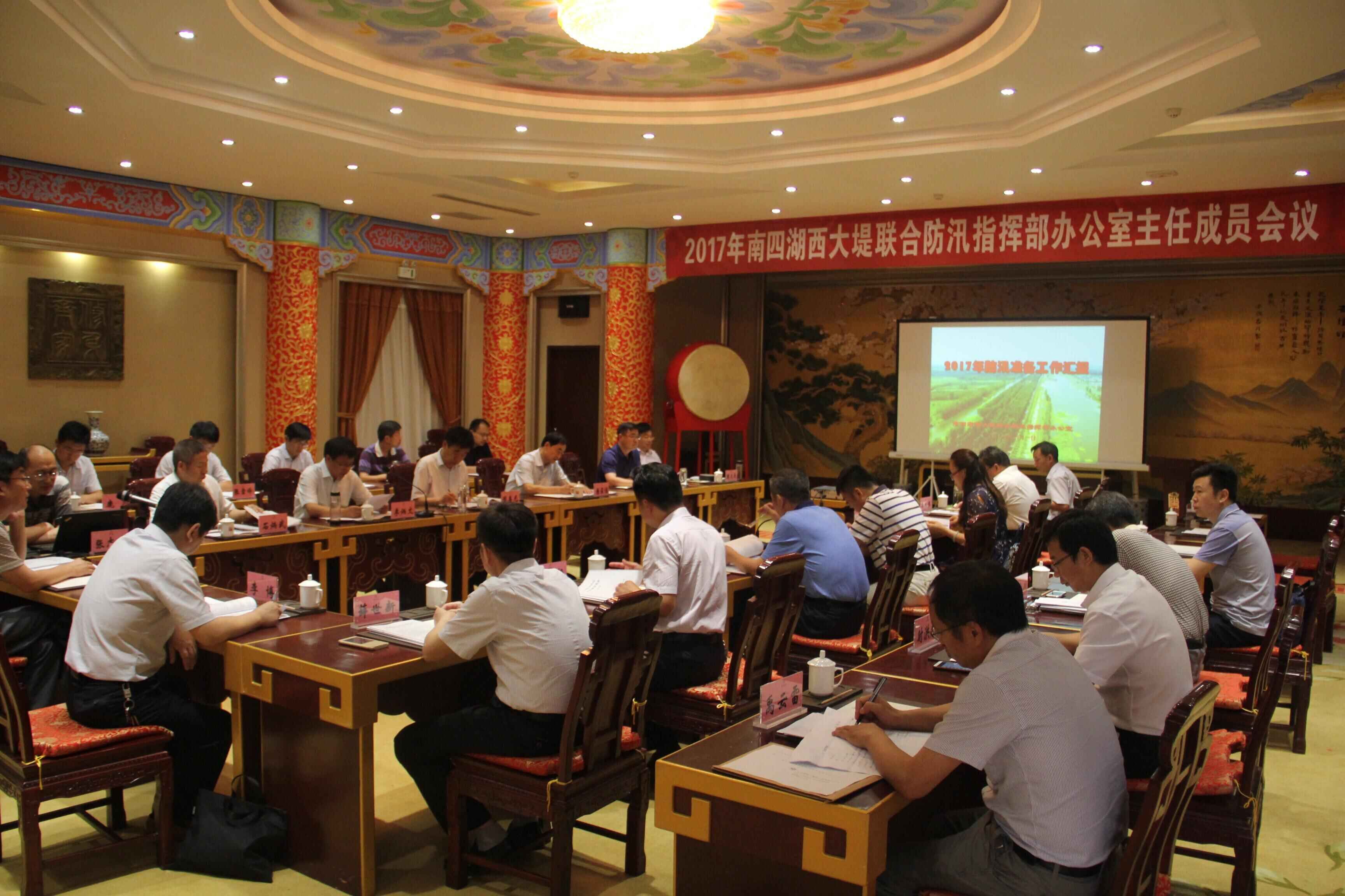 会议充实调整了联防指挥部及其办公室成员,讨论通过了《2017年南四湖湖西大堤插花地段防汛抢险预案》,听取了联防指挥部办公室、上海大屯能源股份有限公司的防汛准备情况汇报,商讨部署了湖西大堤插花地段2017年防汛工作,落实了插花地段的防汛抢险责任,并形成《2017年南四湖西大堤联防指挥部办公室主任成员会议纪要》。会议认为,南四湖湖西大堤插花地段仍然存在采煤沉陷隐患多、防汛抢险难度大等问题,必须进一步完善细化防汛抢险各项措施,按照《2017年南四湖湖西大堤插花地段防汛抢险预案》要求,全面落实各级各段防汛责任。